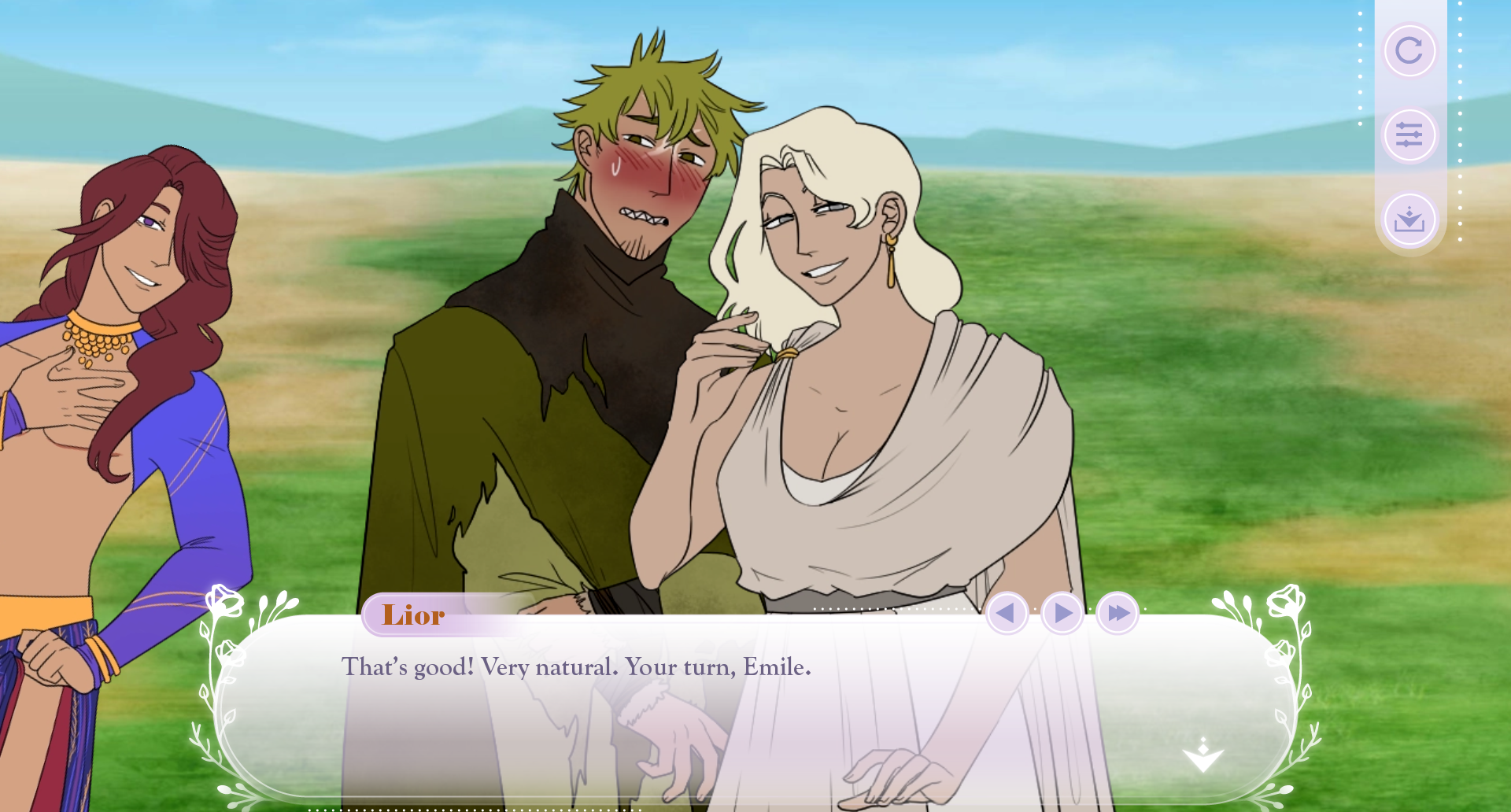 Lior is also very charming, I love how even he can turn into a blushing mess whenever Rey is sweet to him. And that CG between the two was so adorable; I'm looking forward to seeing more CGs in the full game!